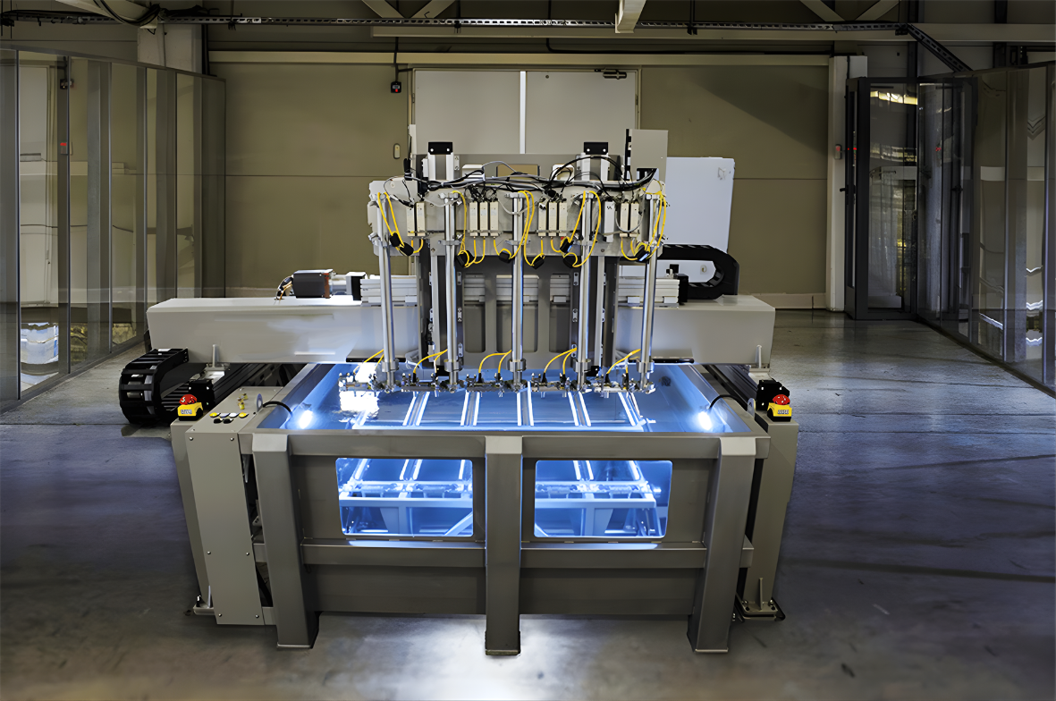 Multi-Bay Production Immersion Systems High-throughput production inspection cells with integrated part handling, multiple immersion bays, and fully automated scan-and-evaluate workflow. Designed for 100% volumetric inspection at production rate. Typical Applications: Aerospace structural plate and billet, aluminium and titanium alloy production inspection, inline manufacturing quality control.
